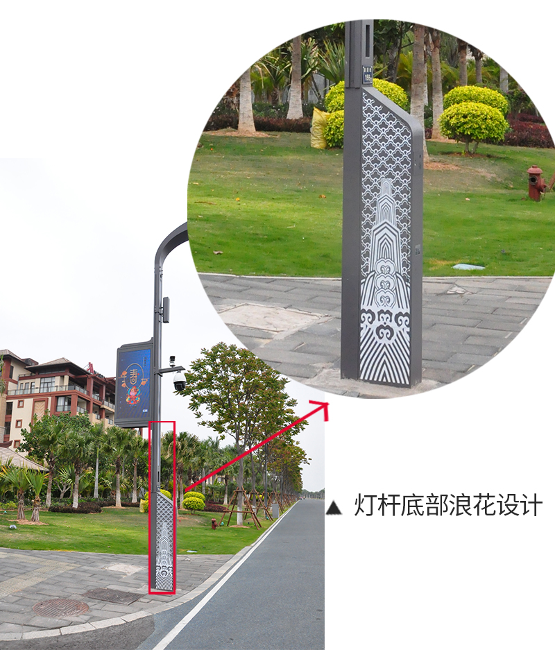 燈桿硬件設(shè)備外掛明顯,影響項(xiàng)目整體美觀