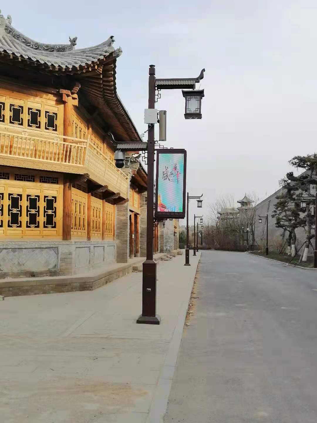 ? ? ? ??“鳳凰歸來兮,既見往昔,亦知來者?!?00余年風雨滄桑,太原古縣城見證著太原時代的變遷。此次智聯(lián)信通為明太原古縣城項目定制化設計符合景區(qū)特色的燈桿——檐如玉?!扒уN百煉,玉汝于成”,寓意太原古縣城如璞玉一般,歷經(jīng)千年風雨后仍熠熠生輝。該燈桿以古建筑作為設計創(chuàng)意來源,桿體采用古建筑體材料的深原木色,照明燈具采用燈籠造型并采用雙光源,不僅滿足道路照明的需求,也發(fā)揮了夜景亮化的功效。另外,路燈燈臂采用特殊的古建筑屋檐造型設計,全方位營造古城氛圍。